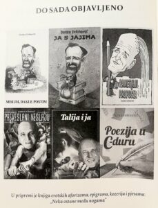 U ostalim pjesmama autor u pretežitom durskom, vedrom ozračju pjeva o djeci, obitelji, prosvjeti, ljubavi (više ih je nagrađeno), proljeću, hrvatskoj povijesti, zbilji, opisujući na osebujan i duhovit način autobiografske zgodne nezgode i nezgodne zgode, gotovo uvijek s humorističkom i satiričnom poentom. Kao glazbenik, nije moga ne parodirati nekoliko Oliverovih hitova, a pjevajući o ženama i ljubavi, zna dokoraknuti i do granica lascivnosti i sladostrašća. Po mnogočemu ovo je doista rijetka i iznimna knjiga u suvremenoj hrvatskoj poeziji. U sudaru svetoga i profanoga, gotovo sve pjesme kroče po humornoj granici, a (dobrog) humora je tako malo u našim životima pa tako i u književnosti. Ovo je zbirka koja ima najviše, čak 46, fusnota u kojima autor objašnjava pojmove koje opjevava, pa knjiga može biti i svojevrsni mali udžbenik povijesti. I na koncu, ovo je pjesnički prvijenac s najviše pogovora u našoj književnosti, šestero njih potpisuje svoj pohvalni sud o njoj: Ante Lib Matić, Ivo Mijo Andrić, Đuro Vidmarović, Nikola Šimić Tonin, Jasminka Bralo-Mudrovčić i Valter Krajcar.